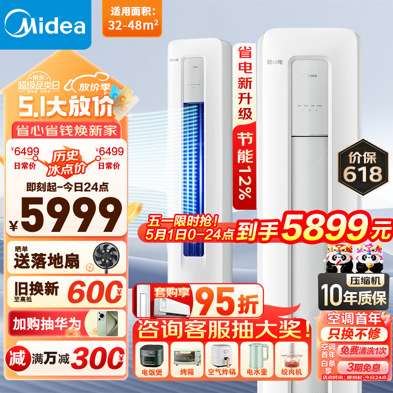 美的(Midea)3匹 酷省电 新一级能效 变频冷暖 客厅空调立式 空调柜机 KFR-72LW/N8KS1-1价格:5899.00元!
