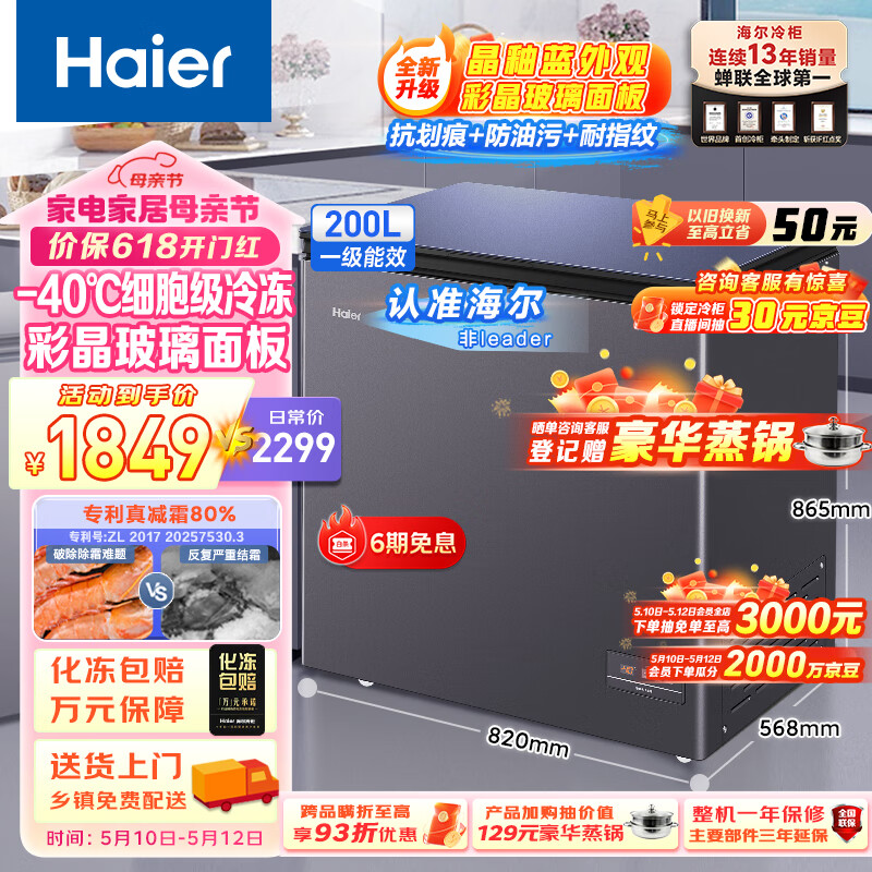 海尔(Haier)200升-40℃彩晶低霜小冰柜家用商用 冷藏柜冷冻柜冰柜小型小冰箱小型冷柜BC/BD-200GHEPGD以旧换新价格:2049.00元!