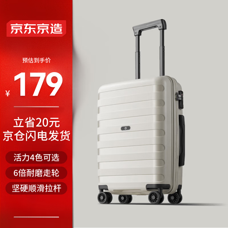 京东京造 飞行家行李箱男女拉杆箱20英寸 旅行箱登机箱密码箱学生 岩白价格:199.00元!
