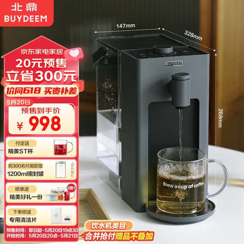 北鼎(Buydeem)台式饮水机办公室桌面即热式饮水机速热饮水机泡茶机智能饮水机一体机3L S902水墨灰 价格:1198.00元!