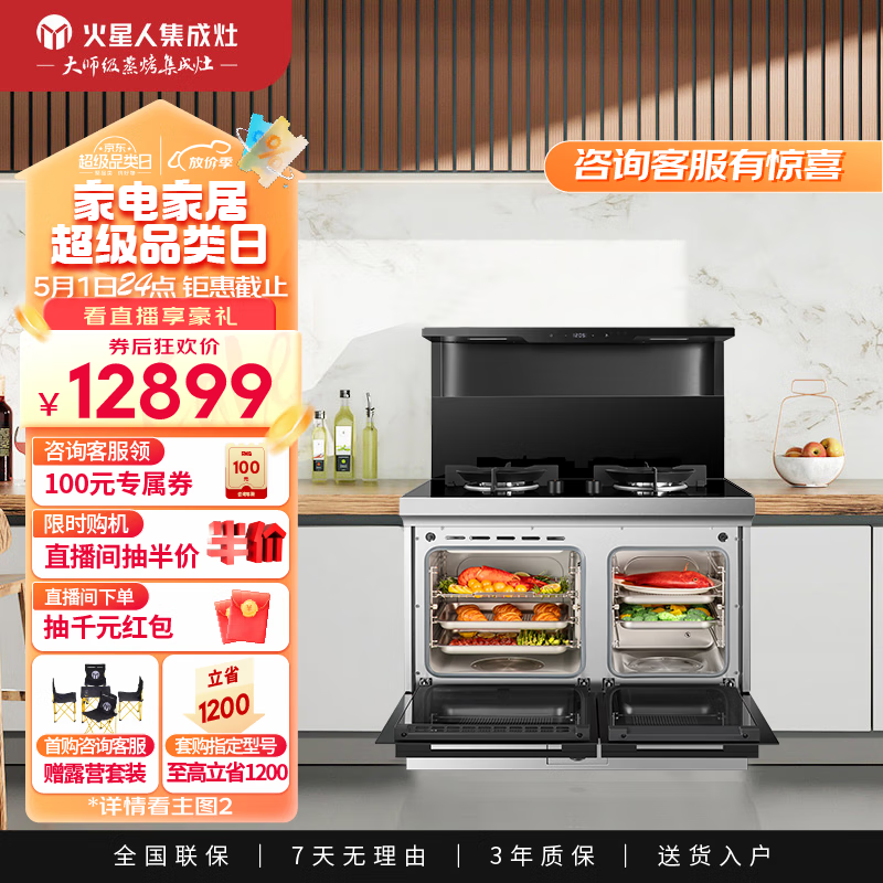 火星人ET30BCZ 集成灶蒸烤一体 左蒸烤炸右快蒸 家用蒸箱烤箱 燃气灶液化气价格:13199.00元!