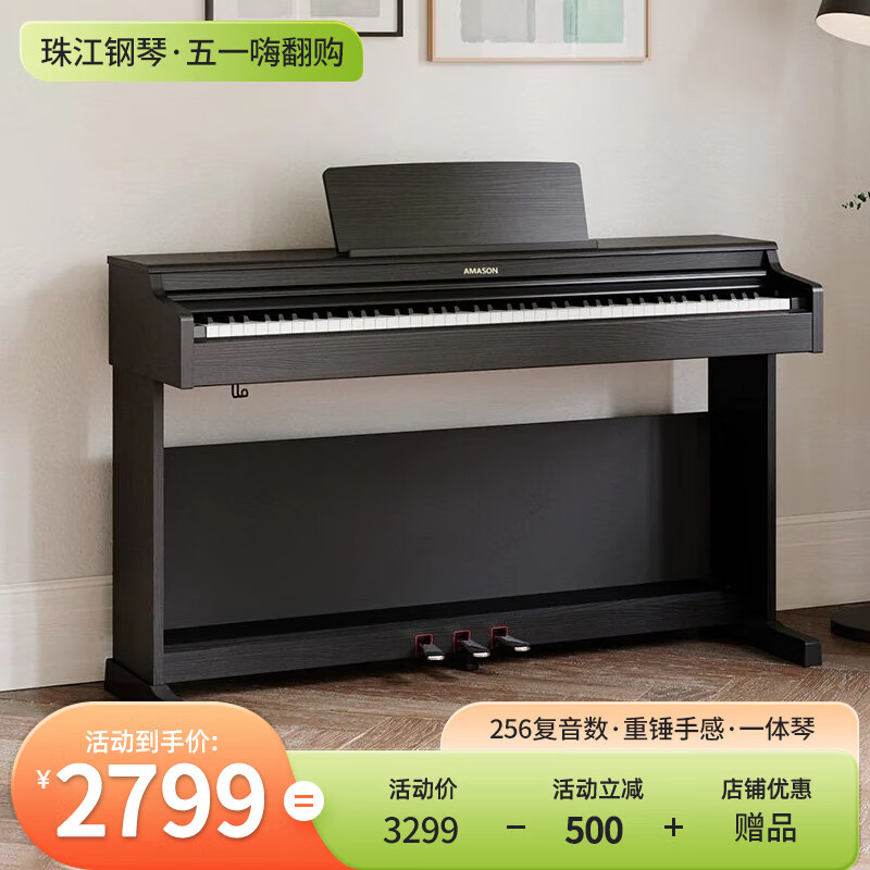 艾茉森(Amason)珠江钢琴 考级电钢琴88键重锤数码电子钢琴专业成人儿童V03S黑价格:3299.00元!