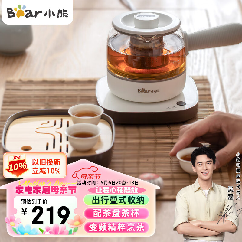 小熊(Bear)小熊(Bear)养生壶煮茶壶煮茶器 0.5L便携式烧水壶旅行家用蒸茶器花茶壶 ZCQ-A05S1 配茶具茶杯价格:219.00元!