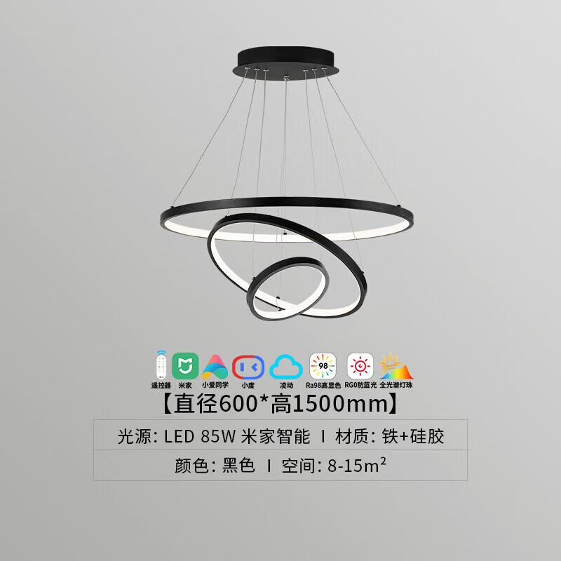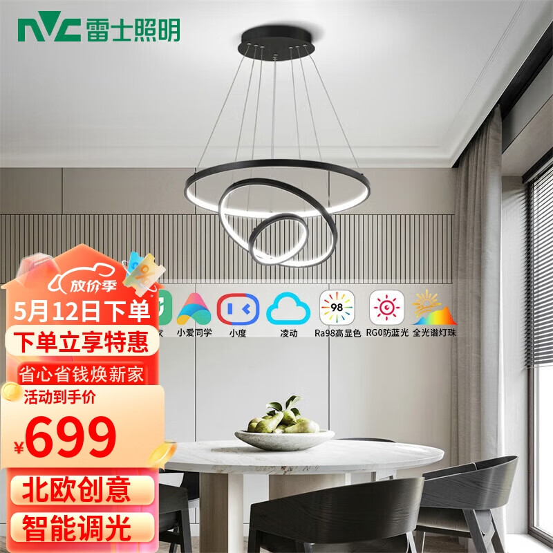 雷士(NVC)现代简约北欧风吊灯装饰灯智能全光谱调光餐吊灯85瓦WHDD85F/G-04价格:699.00元!