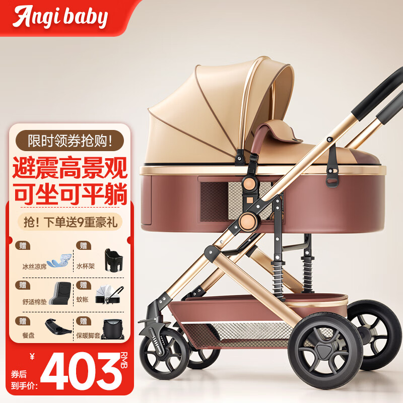 ANGI BABY婴儿推车可坐可躺可折叠婴儿车高景观双向减震手推车价格:439.00元!