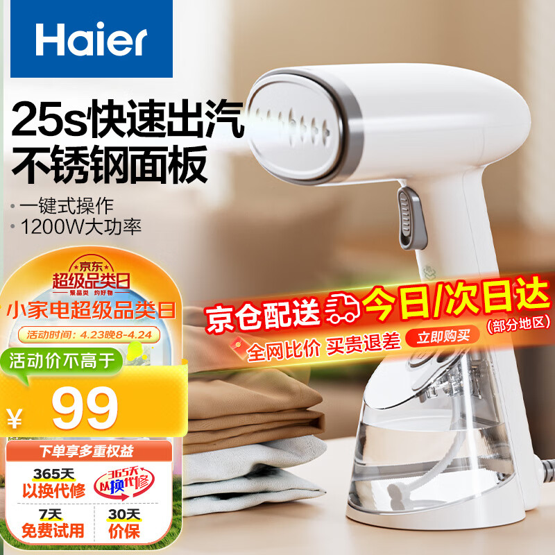海尔(haier)手持挂烫机家用 迷你小型蒸汽熨斗 便携式烫斗 旅行熨衣机 HY-GW2502W价格:129.00元!