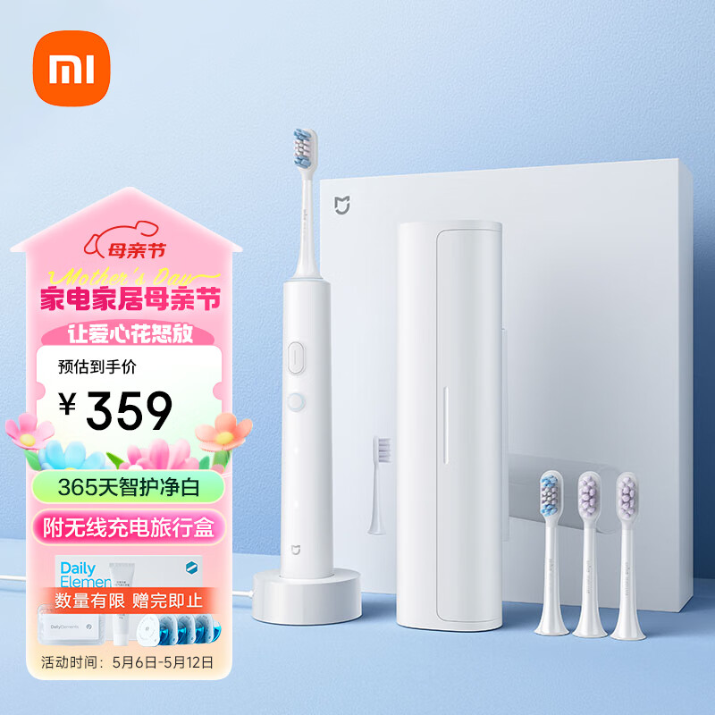 米家小米电动牙刷T501C成人/学生 米家APP 30种定制方案 炫彩灯光 4刷头礼盒装 母亲节礼物推荐价格:359.00元!
