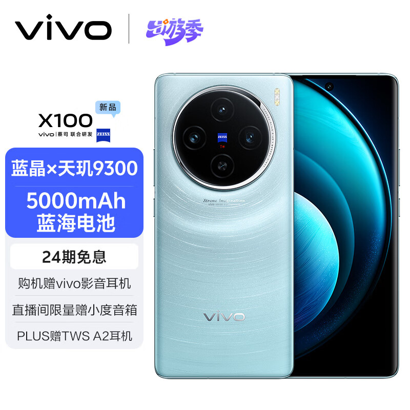 vivo X100 16GB+256GB 星迹蓝 蓝晶×天玑9300 5000mAh蓝海电池 蔡司超级长焦 120W双芯闪充 拍照 手机价格:4299.00元!