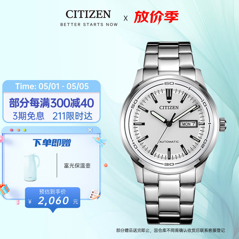 西铁城(CITIZEN)手表男日韩表自动机械白盘日显钢带商务学生送礼物男友NH8400-87A价格:2070.00元!
