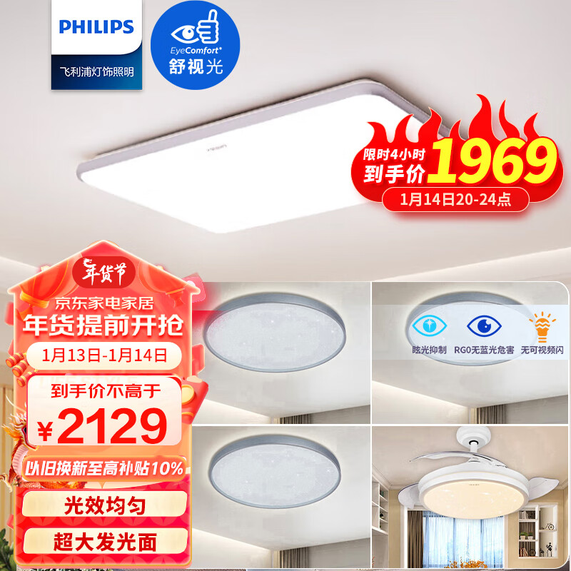 飞利浦(PHILIPS)全光谱led吸顶灯客厅灯卧室灯现代简约灯具套餐三室两厅 怡轩银价格:3099.00元!