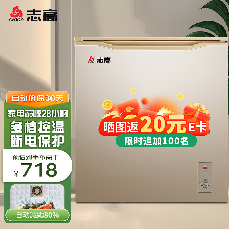 志高(Chigo)微霜专利认证冷柜 205升家用冰柜冷藏冷冻六档调节一级能耗单温小型冰柜 BD/BC-205DW价格:738.00元!