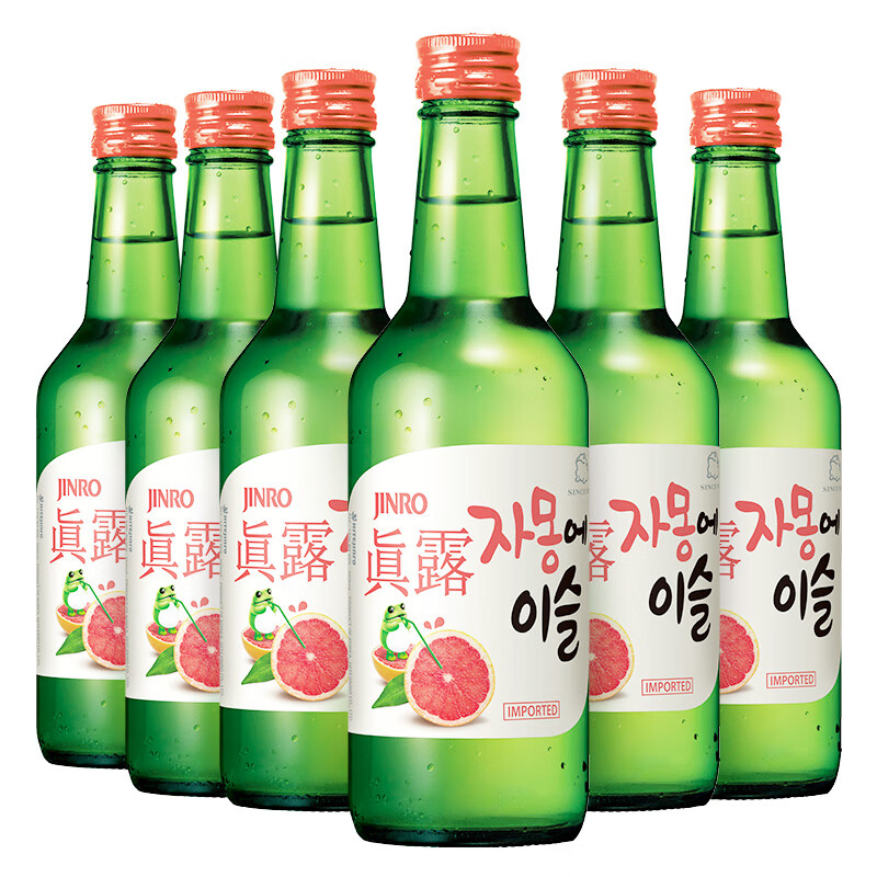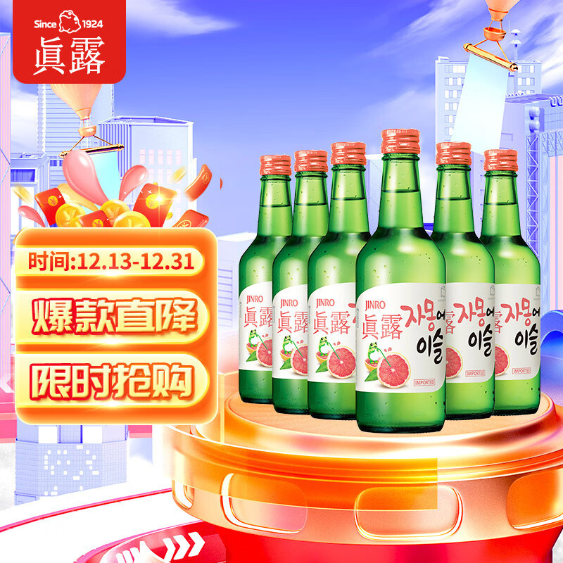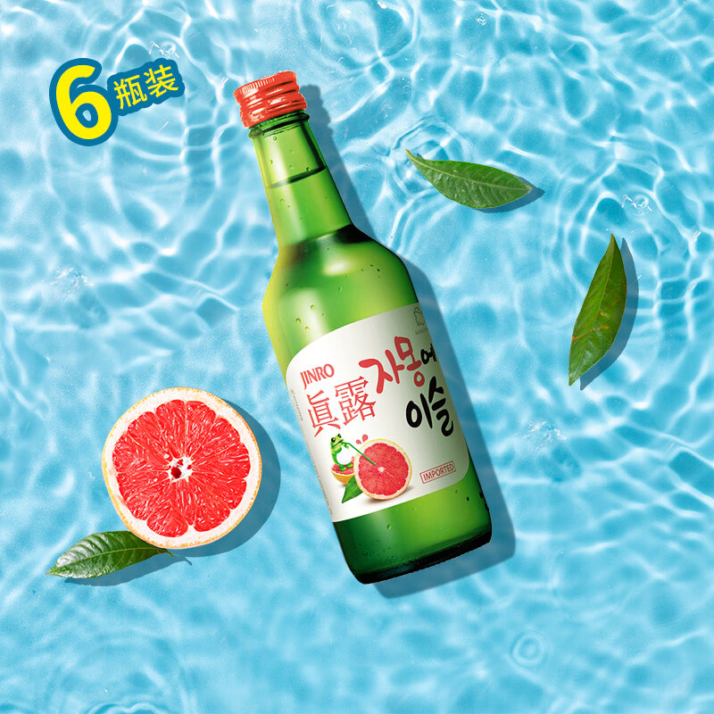 真露果味烧酒13°西柚味 360ml*6瓶装 微醺果味酒 年货送礼价格:70.00元!