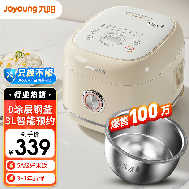 九阳家用3L电饭锅304不锈钢内胆0涂层5A品质好米饭电饭煲30N1价格:339.00元!