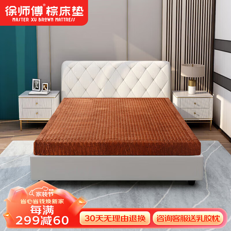 徐师傅全山棕床垫硬棕垫手工线缝单双人榻榻米床垫定制1*2米价格:1984.00元!