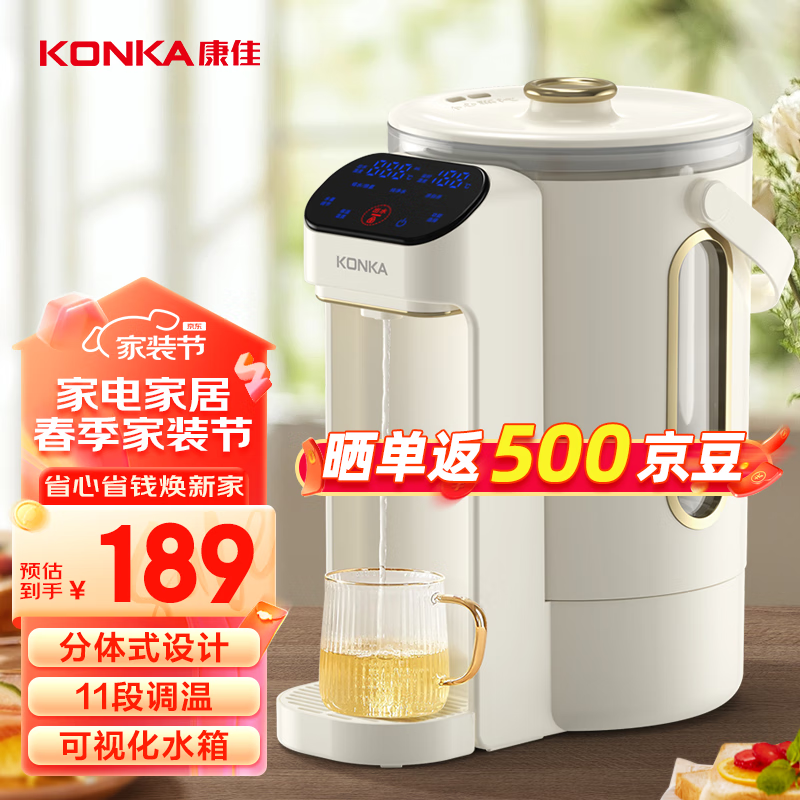 康佳(KONKA)电热水瓶 恒温水壶 304电热水壶 大容量 除氯多段保温双层防烫 玻璃可视3L烧水壶 KDSP-3008E-W价格:229.00元!