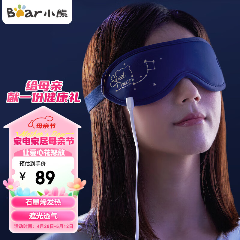 小熊(Bear)石墨烯发热眼罩 USB插口快速发热护眼 眼部热敷睡眠遮光透气午休睡觉眼罩 母亲节礼物A03N1价格:109.00元!