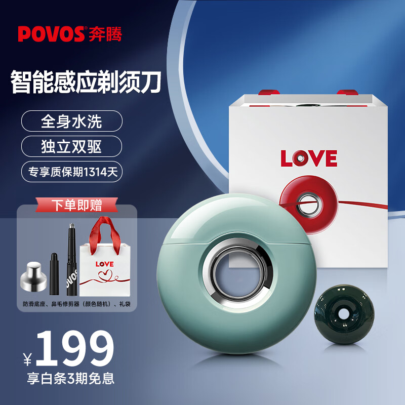 奔腾(POVOS)甜甜圈电动剃须刀 小巧便携刮胡须刀须刨智能T000青涩蓝 生日纪念日礼物送男友送老公送男生价格:219.00元!