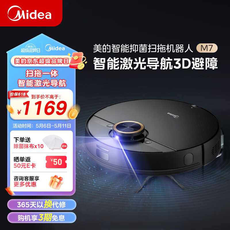 美的(Midea)扫地机器人扫拖一体M7 扫拖一体机器人 家用扫地机拖地机 曜石黑价格:1269.00元!