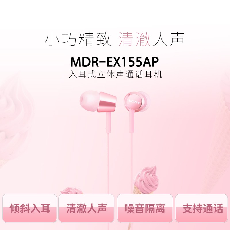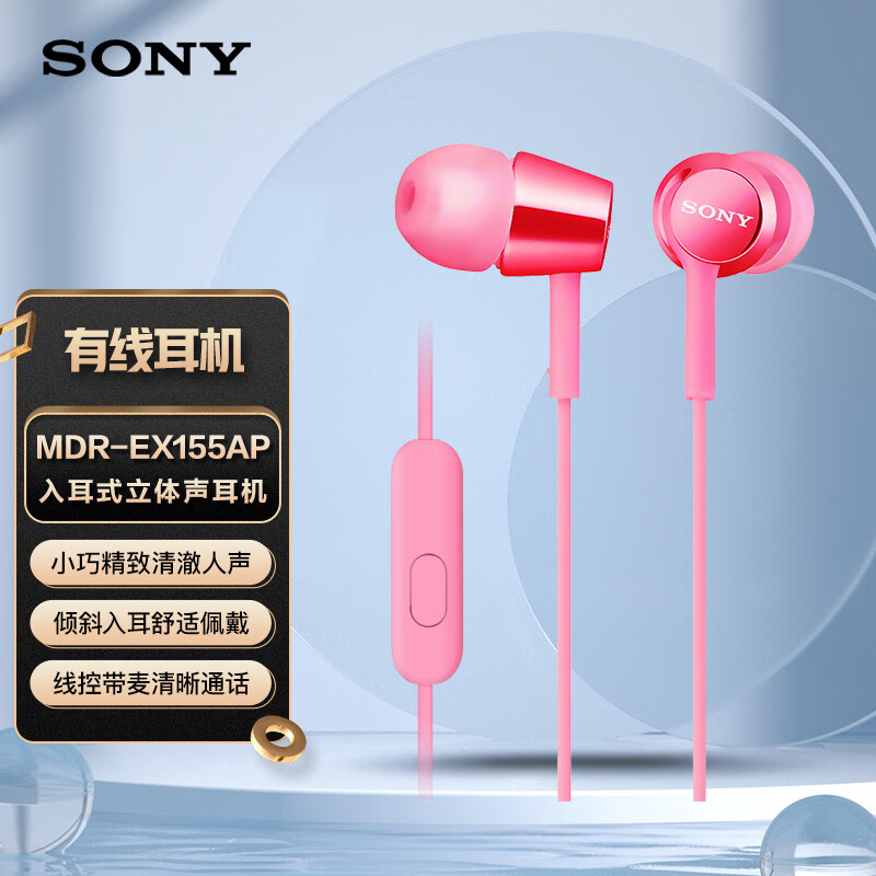 索尼(SONY) MDR-EX155AP 入耳式耳机有线 3.5mm接口 带麦立体声线控手机电脑适用 粉红色价格:149.00元!