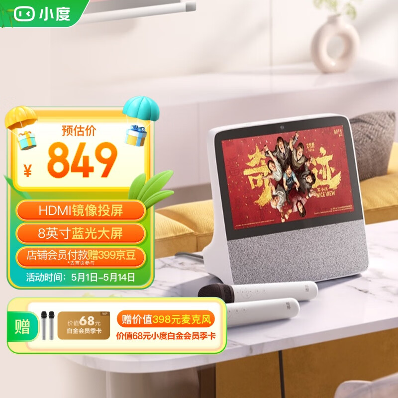 小度智能屏 X8 升级版 搭配无线麦克风 双麦欢唱 大屏K歌 家庭KTV 实惠套装价格:849.00元!