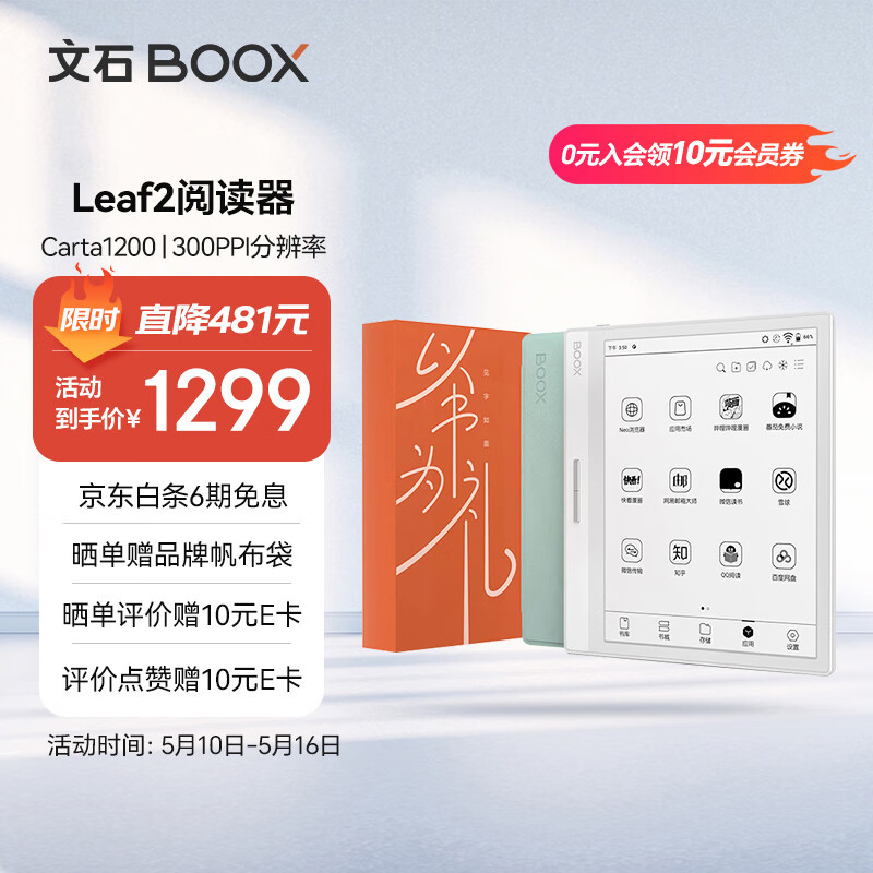BOOX文石 Leaf2 阅读礼盒 7英寸电子书阅读器平板 墨水屏电纸书电子纸 便携阅读看书 电子笔记本 白色价格:1299.00元!