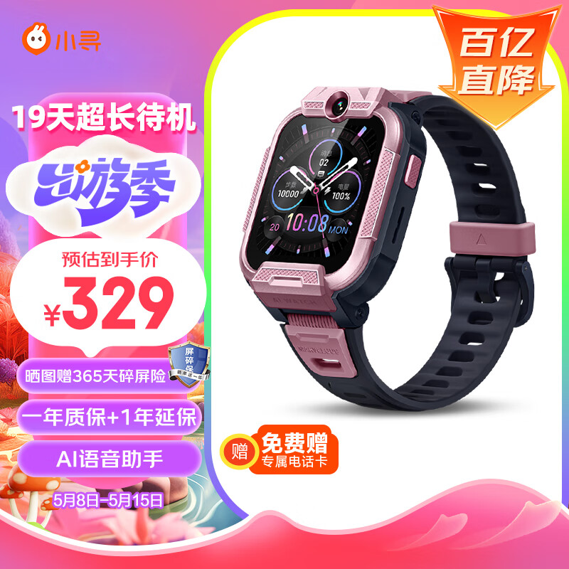 小寻 儿童电话手表X5 儿童手表 插卡通话手表 女孩手表 长续航防水双摄视频拍照定位 樱花粉价格:329.00元!