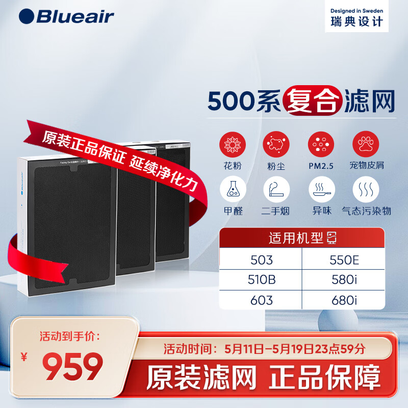 布鲁雅尔Blueair空气净化器过滤网滤芯 复合滤网适用503/510B/550E/580i【配件】价格:959.00元!