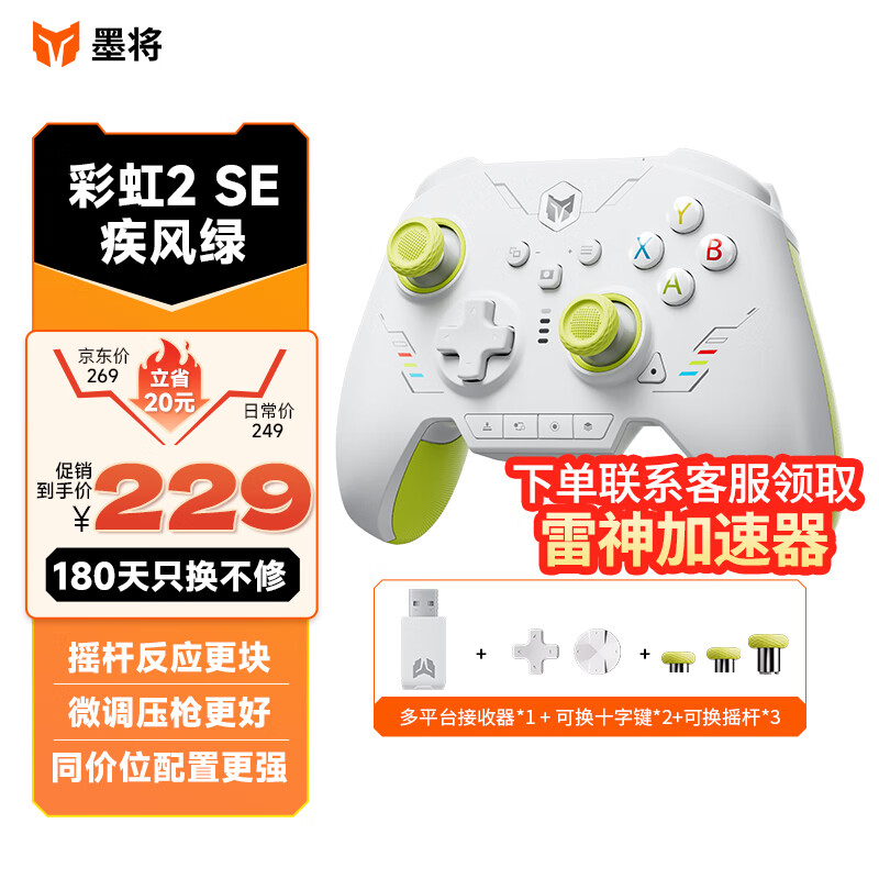 墨将 彩虹2 Se青春版 多模电竞游戏手柄 Switch Pro蓝牙体感震动电脑PC手机steam幻兽帕鲁Apex疾风绿价格:229.00元!