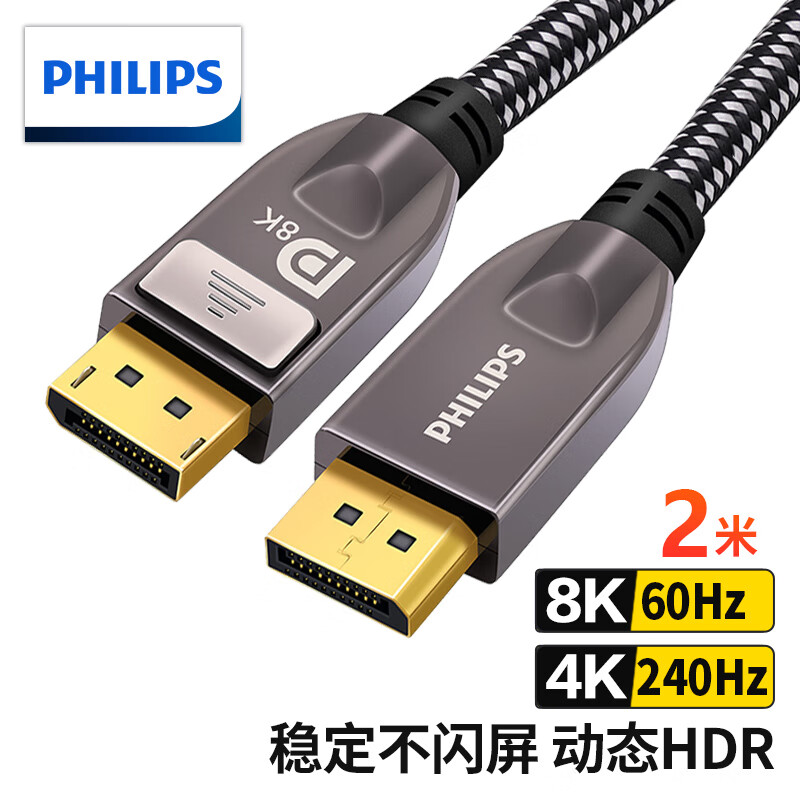 飞利浦(PHILIPS)DP线1.4版4K144Hz 2K165Hz 8K高清DisplayPort公对公连接线 电脑游戏电竞显示器视频线 2米价格:129.00元!