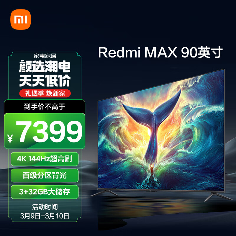 小米游戏电视 Redmi MAX 90 超大屏 金属屏 144Hz 智能教育游戏 85英寸+电视机以旧换新L90R9-MAX价格:7399.00元!