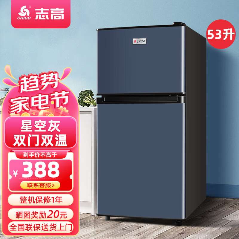 志高(CHIGO)53升小冰箱 双门宿舍租房小户型家用 冷藏冷冻双开门 迷你电冰箱节能保鲜冰箱BCD-53A138D 星空灰价格:418.00元!