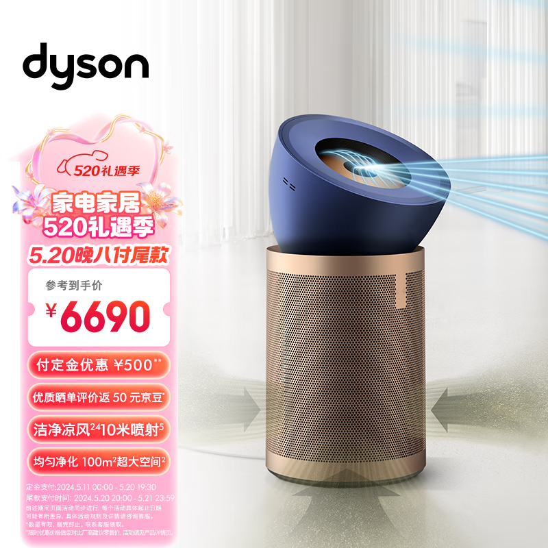 戴森(DYSON)DYSON BP04空气净化器 大面积净化异味和过敏原 滤除花粉 宠物毛发 输出洁净凉风 【蓝金色】价格:6690.00元!