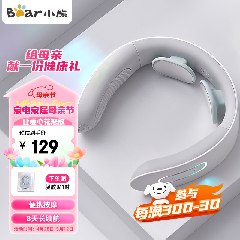 小熊(Bear)颈椎按摩器 颈部按摩仪 肩部颈部护理脉冲肩颈按摩仪 办公室护颈仪 母亲节礼物实用 AMQ-B04K1价格:169.00元!