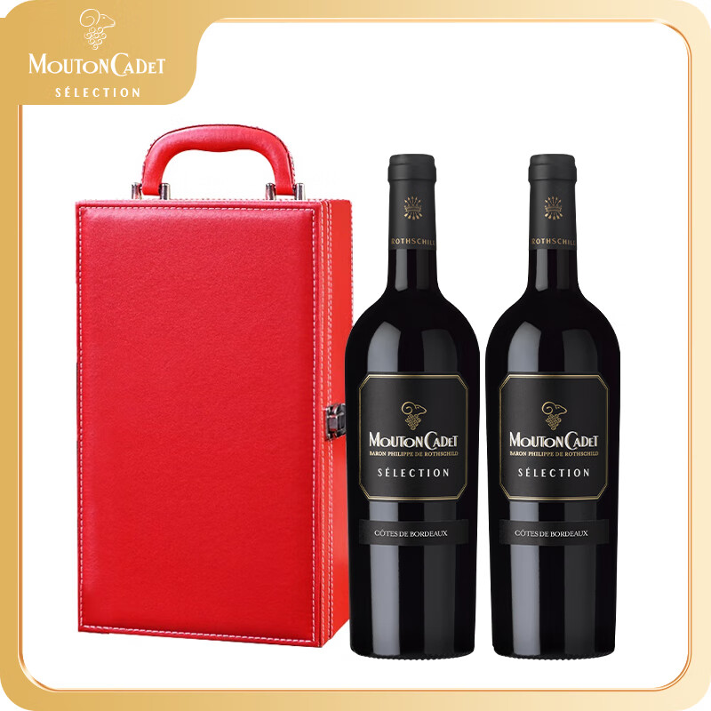 木桐嘉棣(MOUTON CADET) 法国 精选波尔多丘红葡萄酒 750ml 双支礼盒装价格:198.00元!