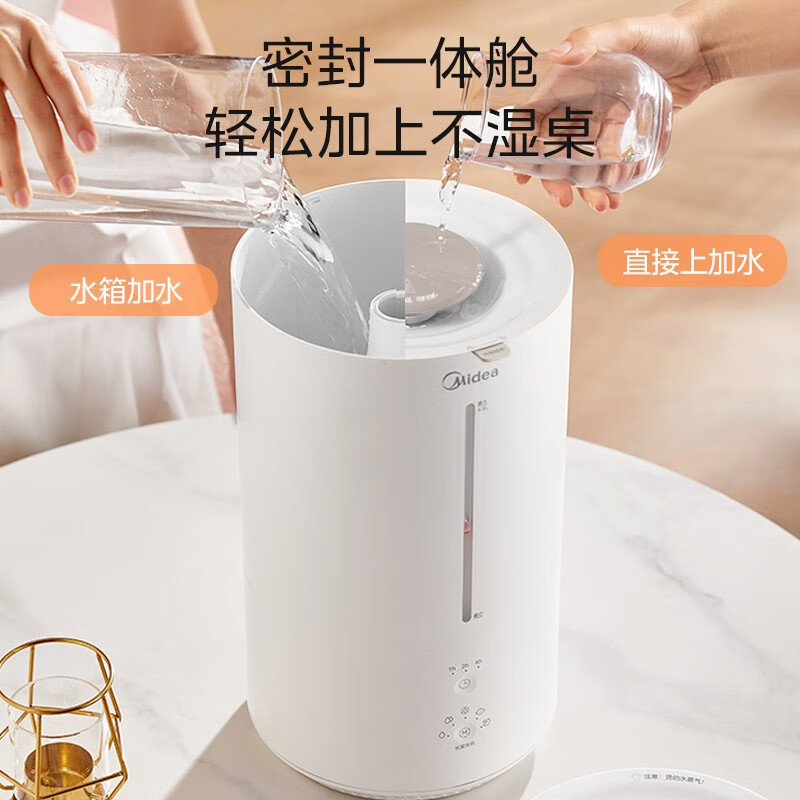 美的(Midea)热雾加湿器 4.5L大容量卧室家用办公室桌面智能恒湿空气加湿器 100℃蒸馏除菌 湿随温变 RS-3RWLS价格:169.00元!