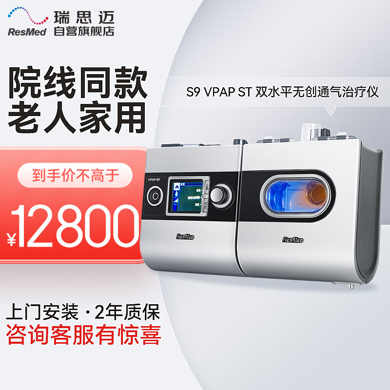 瑞思迈呼吸机Resmed S9 VPAP ST双水平无创便携式老年人医用呼吸仪肺病专用排二氧化碳价格:12800.00元!