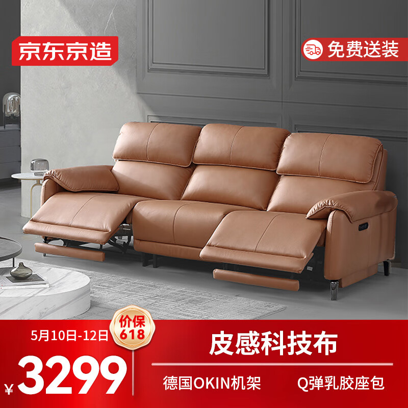 京东京造布艺沙发 皮感科技布|德国机架|双电动位 客厅小户型2.15m橙SE08价格:3899.00元!