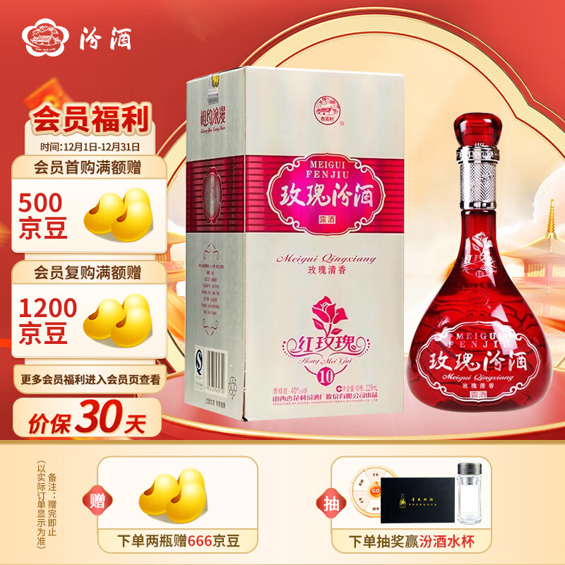 汾酒 玫瑰汾酒玲珑 清香型白酒 40度 225ml 单瓶(2012-2013年老酒)价格:86.00元!