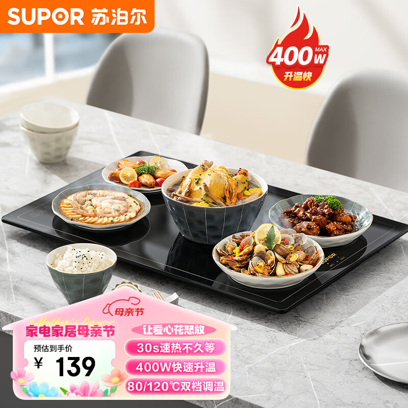苏泊尔(SUPOR)暖菜板 饭菜保温板热菜板 加热桌垫菜板 烘干发酵暖酒保温板(方形) BF6040A805J价格:139.00元!