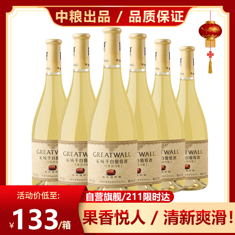 长城(GreatWall)干白葡萄酒橡木桶陈酿特级莎当妮750ML*6瓶(原箱包装)价格:133.00元!
