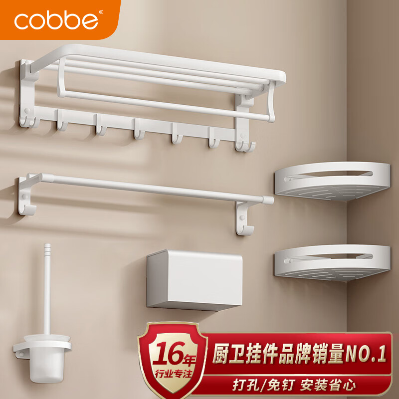 卡贝(cobbe)太空铝毛巾架浴室壁挂免打孔卫生间置物架洗手间浴巾架五金挂件价格:218.00元!