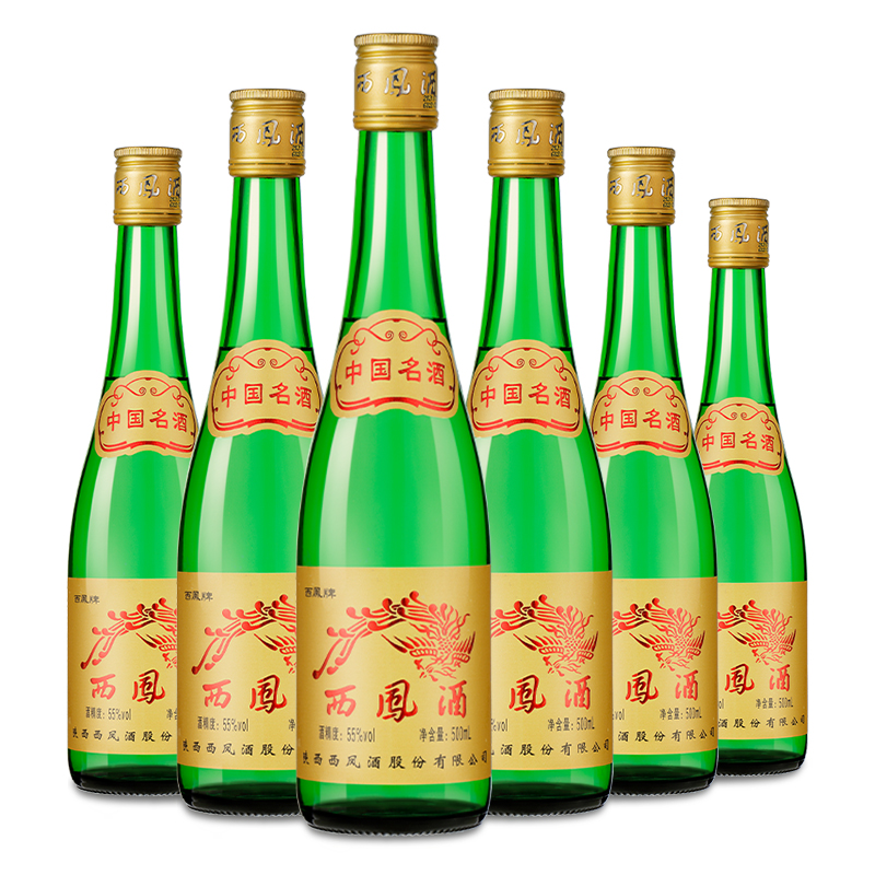 西凤酒 黄标高脖绿瓶 55度 500ml*6瓶 整箱装 凤香型白酒价格:290.00元!
