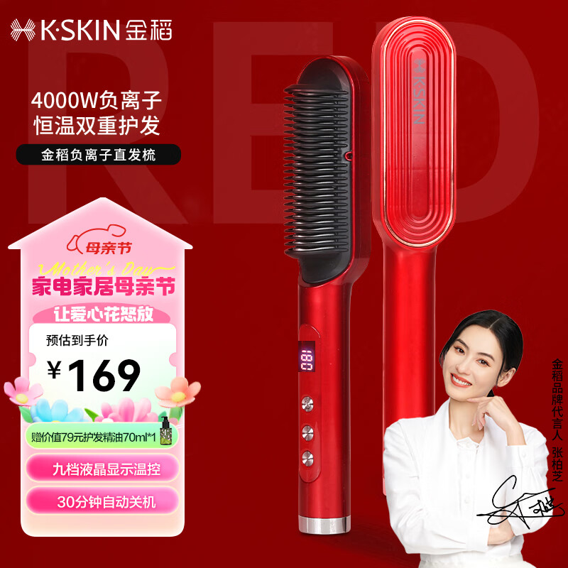 金稻直发梳负离子卷发棒内扣直板夹造型梳子4000万负离子护发30秒速热礼物女KD380K红色 母亲节礼物女价格:249.00元!