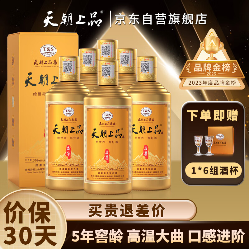 天朝上品贵人 品鉴金装 绵柔酱香型白酒53度500ml*6瓶整箱装 宴请送礼价格:439.00元!