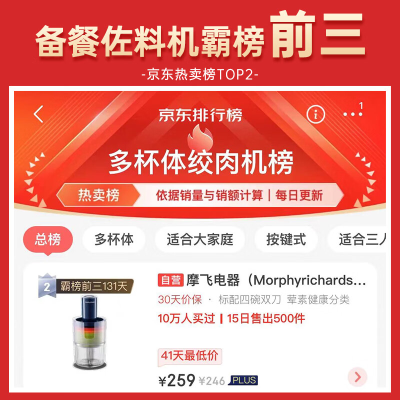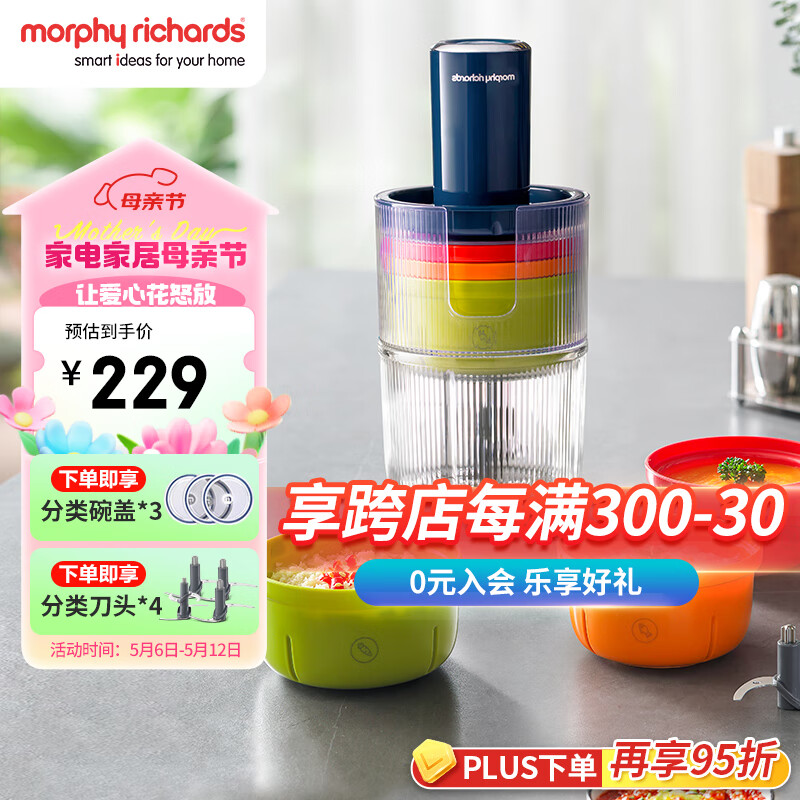 摩飞电器(Morphyrichards)绞肉机 家用套娃佐料机 多功能辅食机电动料理机捣蒜器 搅拌机绞馅机碎肉机 MR9405 蓝价格:229.00元!