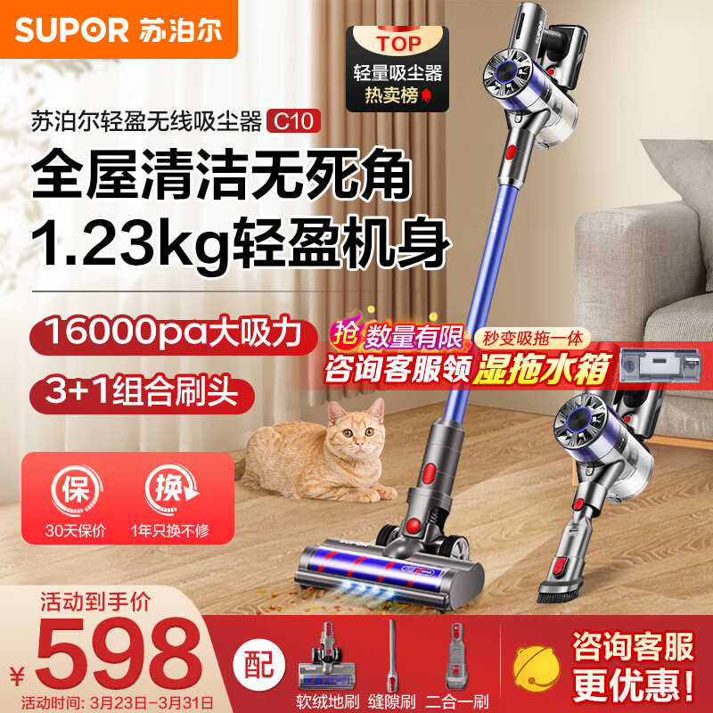 苏泊尔 (SUPOR )手持吸尘器家用无线除尘机大功率立式充电轻量宠物家庭适用VCS63-C10价格:648.00元!