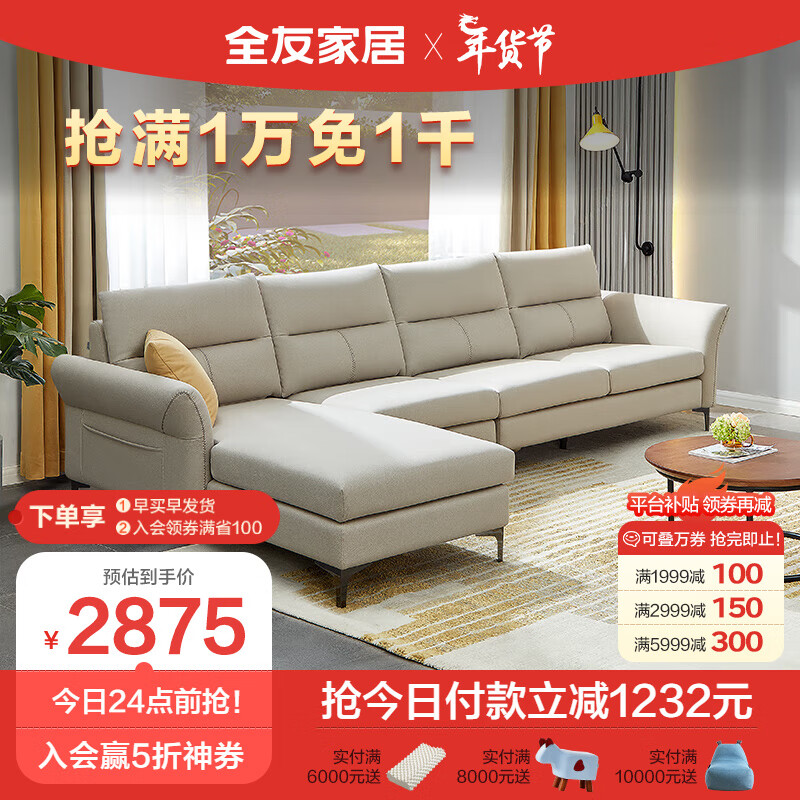 全友家居 现代简约usb充电功能科技布可拆洗储物沙发客厅家具102679C价格:4107.14元!
