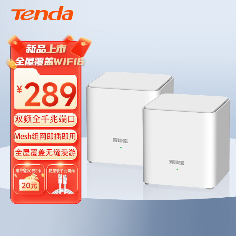 Tenda腾达 全屋WiFi6子母路由器 AX1500千兆双频 Mesh组网无线穿墙王 别墅大户型覆盖套装 EM3两只装价格:329.00元!