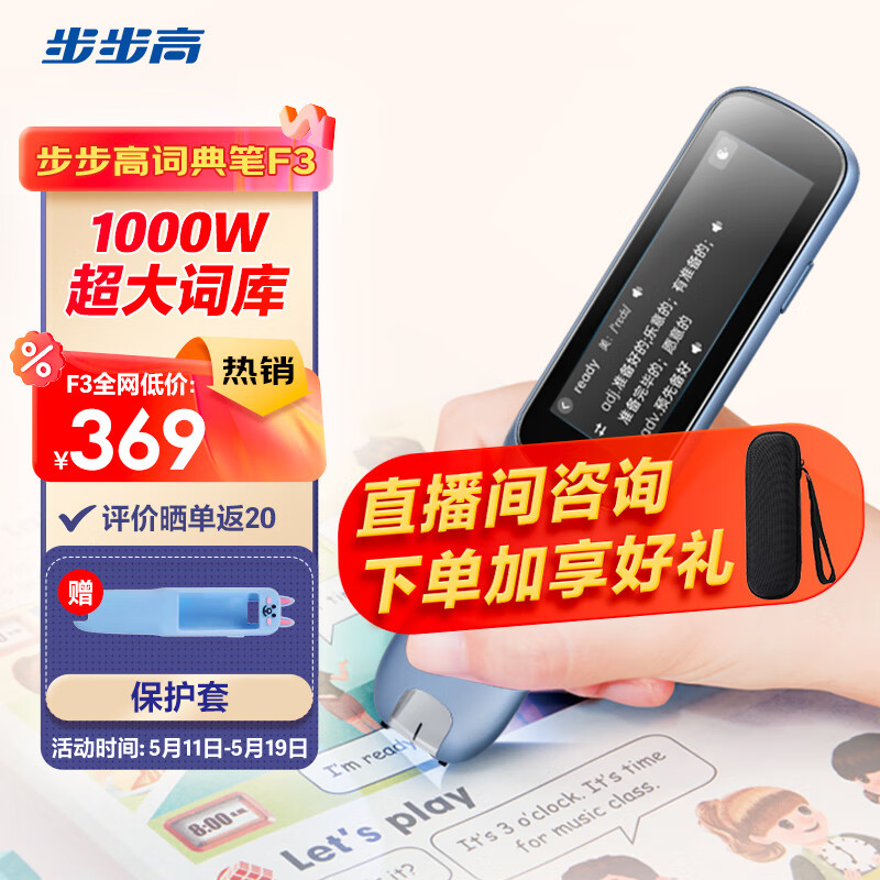 步步高词典笔F3 点读笔扫描笔翻译笔 学习机电子词典 小学生专属课本同步扫读翻译机翻译器价格:369.00元!