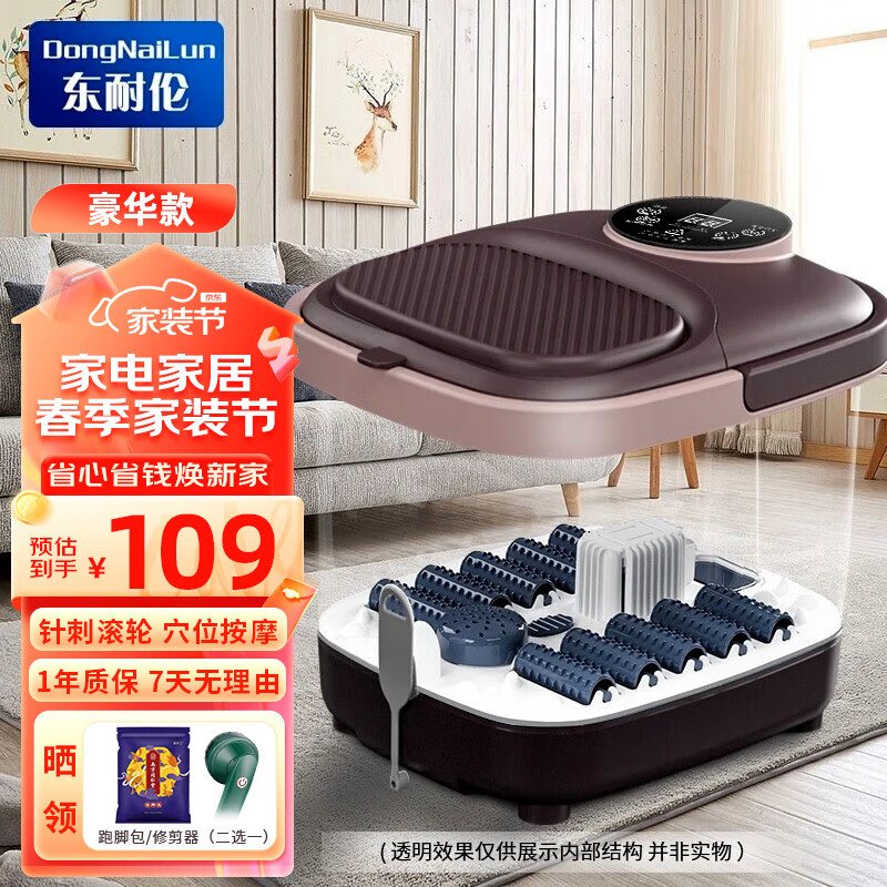 东耐伦泡脚桶足浴盆自动防漏电保护 按摩洗脚盆智能恒温加热泡脚盆脚动按摩洗脚桶送父母送长辈节日礼物 HS-ZY3 棕色滚轮按摩豪华款价格:115.19元!